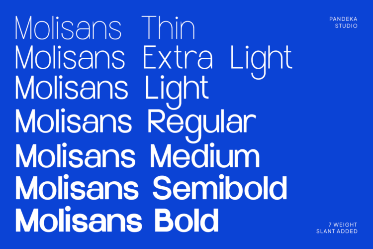 This font includes 14 styles — from Thin to Bold with matching Slanted versions — and comes with a Variable Font for flexible weight and slant customization. Featuring 24+ elegant ligatures, multilingual support, numerals, and punctuation, Molisans is built to adapt perfectly across digital and print platforms, offering both versatility and refinement in modern design.